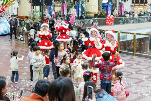 대표 공연인 ‘해피 크리스마스 퍼레이드’는 매일 오후 2시와 8시 어드벤처 1층에서 약 30분간 펼쳐진다. 눈까지 날려 크리스마스 분위기를 더했다.