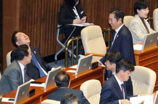 정청래 더불어민주당 대표와 김병기 원내대표가 9일 국회에서 열린 본회의에서 대화하고 있다. <ⓒ투자가를 위한 경제콘텐츠 플랫폼, 아시아경제(www.asiae.co.kr) 무단전재 배포금지>
