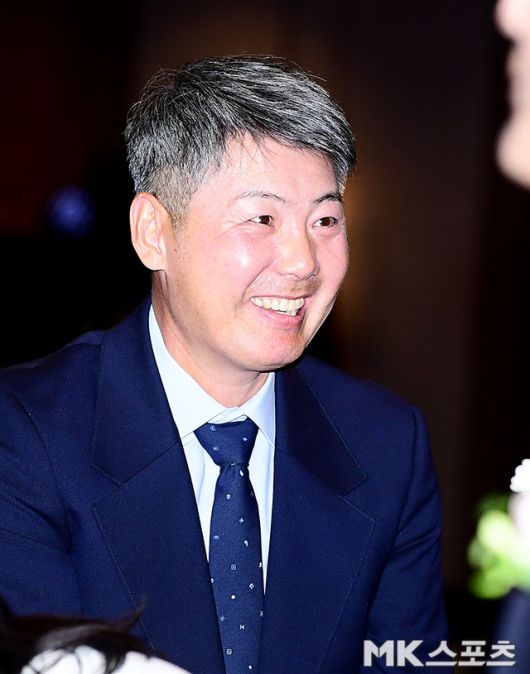 두산 김원형 신인 감독이 참석자들과 인사를 나누고 있다.