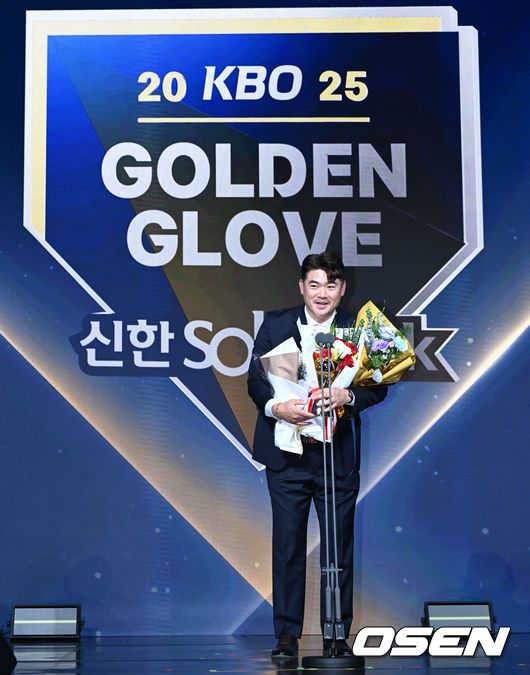 [OSEN=조은정 기자] 9일 오후 서울 송파구 잠실동 롯데호텔 월드에서 2025 신한은행 SOL 뱅크 KBO 골든글러브 시상식이 열렸다. KBO 골든글러브 시상식은 포지션별 최고의 선수를 가리는 자리로 올 시즌의 대미를 장식하는 자리다. SSG 노경은이 페어플레이상을 수상 소감을 말하고 있다. 2025.12.09 /cej@osen.co.kr