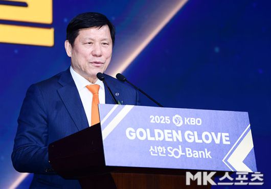 ‘2025 신한은행 SOL 뱅크 KBO 골든글러브 시상식’이 9일 오후 서울 송파구 잠실동 롯데호텔 월드에서 개최됐다. KBO 허구연 총재가 인사말을 하고 있다. 잠실동(서울)=김영구 MK스포츠 기자 [ⓒ MK스포츠, 무단전재 및 재배포 금지]