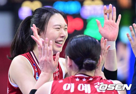 경기를 마치고 승리한 현대건설 양효진이 동료들과 기뻐하고 있다. 2025.12.09 / dreamer@osen.co.kr