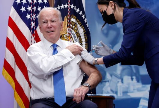 지난 2022년 10월 당시 미국 대통령이었던 조 바이든이 백악관 내 사우스 코트 강당에서 코로나19 추가 접종을 받고 있는 모습. 트럼프 2기 행정부에서 백신 회의론자인 로버트 케네디 주니어가 보건복지부 장관을 맡은 이후, 미국 식품의약국(FDA)이 코로나19 백신과 성인 사망 사례와의 연관성 조사에 나섰다.[게티이미지] |
