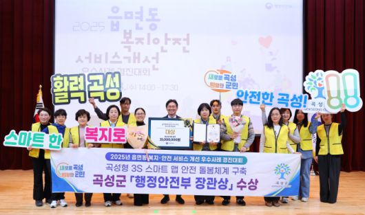 [무안=뉴스핌] 조은정 기자 = 행정안전부가 주관한 '2025년 전국 읍면동 복지·안전 경진대회'에서 전남 곡성군이 대상을, 광양시가 최우수상을 수상했다고 10일 밝혔다.