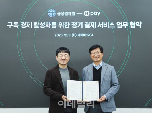 이번 협약을 통해 △계좌 정기결제 및 Npay 결제 시스템 연계 △구독경제 활용 기관 대상 정기구독 결제 서비스 제공 △다양한 결제수단 간 결합 및 신규 결제 서비스 발굴 △신규 고객 및 이용기관 확대를 위한 공동 마케팅에 협력할 예정이다.
