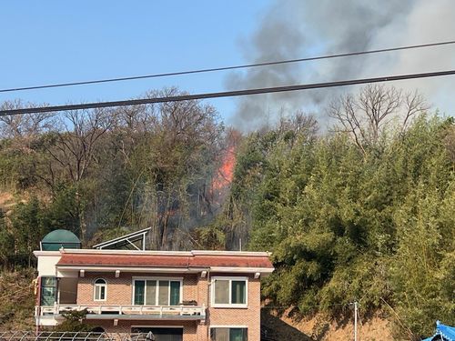 (양양=연합뉴스) 류호준 기자 = 10일 오전 10시 38분께 강원 양양군 손양면 한 배밭에서 불이 나 주택 인근으로 번졌다.