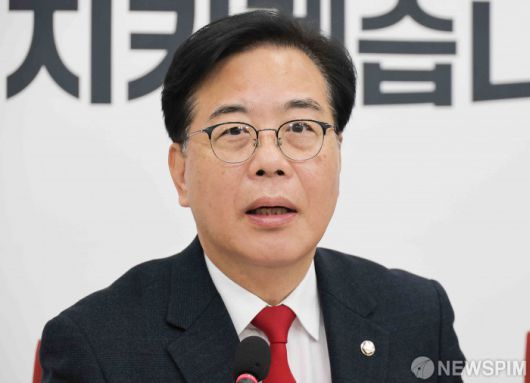 [서울=뉴스핌] 윤창빈 기자 = 송언석 국민의힘 원내대표가 10일 오전 서울 여의도 국회에서 현안 관련 기자간담회를 하고 있다. 2025.12.10 pangbin@newspim.com
