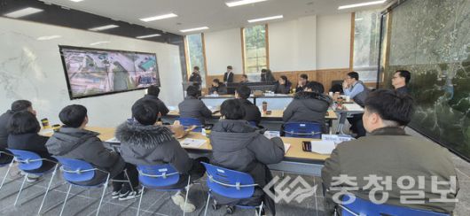 한국농어촌공사는 10일 충북 진천군 백곡저수지 홍보관에서 공사 관계자 30여 명이 참석한 가운데 ‘드론 실습장 구축’을 회의를 진행하고 있다. |