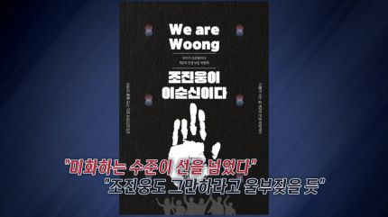 검정색 바탕에 "We are Woong" "우리가 조진웅이다" "조진웅이 이순신이다"라는 문구가 적혀 있고요,