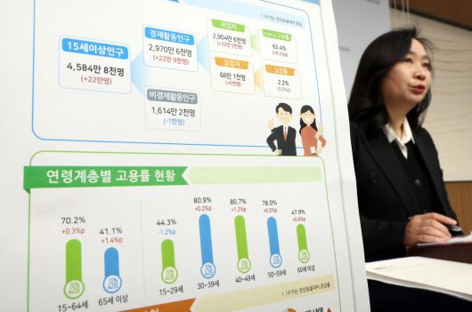 연령별로는 청년층(15∼29세) 취업자가 17만7000명 감소해 2022년 11월 이후 37개월 연속 줄었다. 반면 60세 이상 취업자는 33만3000명, 30대는 7만6000명, 50대는 2000명 늘었다.