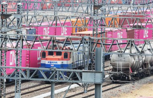 민주노총 공공운수노조 전국철도노동조합이 예고한 총파업을 하루 앞둔 10일 경기도 의왕시 오봉역에서 화물열차가 이동하고 있다. 연합뉴스 |