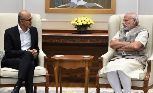 나렌드라 모디(오른쪽) 인도 총리와 사티아 나델라 마이크로소프트 최고경영자(CEO)가 2017년 2월 21일 인도 뉴델리에서 대화를 나누고 있는 모습. (사진=AFP) |