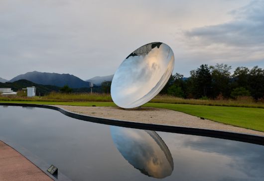 정원에는 2개의 대형 조형물이 전시돼있다. 하나는 현대미술의 거장 아니쉬 카푸어의 ‘스카이 미러(Sky mirror·하늘 거울)’로, 하늘과 땅이 만나는 의미를 담았다. 인도 출신 영국 작가인 카푸어의 작품 세계는 형이상학적이며 본질을 추구하는 종교적 영성의 깊이까지 닿아있다. ‘스카이 미러’는 여러 버전이 있는 유명한 공공작품이다.