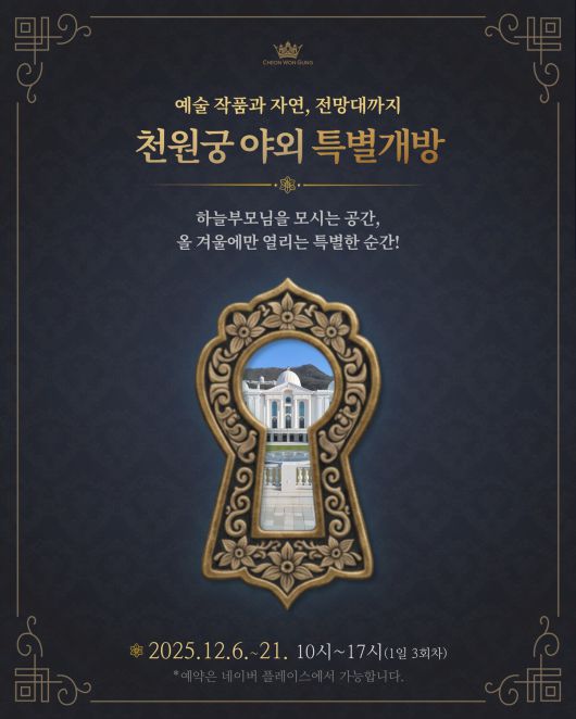 효정천원 관계자는 “천원궁 박물관 겨울 개방을 계기로 더욱 많은 이들이 효정천원의 평화 이상의 가치를 느끼고 문화·예술·자연을 경험하길 바란다”며 “가족 여행객이 머무는 동안 편안한 휴식과 행복, 깊은 평온을 얻을 수 있도록 관광 인프라 환경을 지속적으로 확충하겠다”고 밝혔다.
