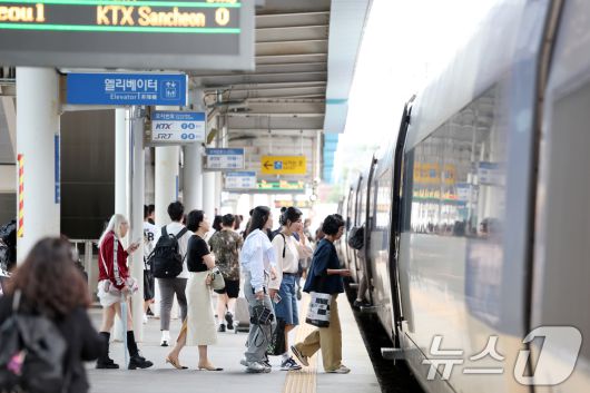 광주송정역에서 열차 이용객들이 서울행 KTX산천에 오르고 있다. ⓒ News1 이승현 기자 |
