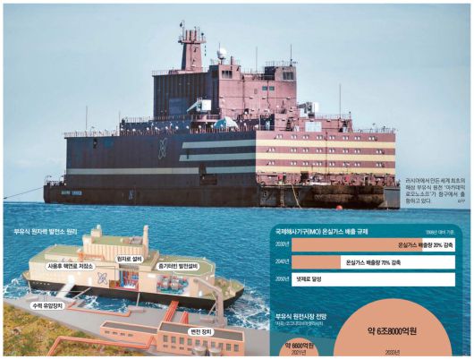 국제해사기구(IMO)는 2050년까지 국제 해운 온실가스 배출량을 100% 감축하겠다는 목표를 내놨고, 2027년부터 턴소 배출 기준을 지키지 못하는 선박은 초과 배출량 t당 100달러가 넘는 탄소세를 내야 한다. 김종원 삼성중공업 조선해양연구소 그룹장은 "오랫동안 해상 원전에 관한 연구와 논의가 이어졌고 지금이야말로 시장이 형성되는 시기"라며 기대감을 표했다. 김 그룹장은 "IMO가 선박 탄소 배출 규제를 본격적으로 추진하는 등 전체적 분위기가 원전을 향하고 있다"고 했다.
