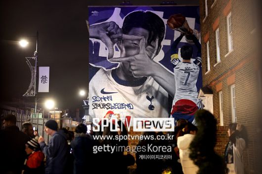 행사가 끝난 뒤, 손흥민은 그라운드를 떠나기 전 경기장 외벽 앞에 섰다. 구단이 새로 제작한 대형 벽화였다. 유로파리그 우승 세리머니, ‘찰칵’ 포즈, 허리에 두른 태극기. 말 그대로 손흥민의 역사와 상징이 한 면에 모두 새겨졌다. “SON HEUNG-MIN, TOTTENHAM LEGEND”라는 문구가 벽을 채웠다.
