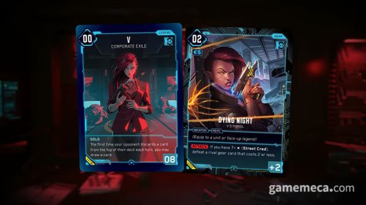 카드에는 공격력을 포함한 여러 수치가 존재하며, 일부 장비는 단순 능력치 상승 외에도 공격 또는 방어 단계에서 별도 효과를 발휘한다. 카드에는 공격(attack), 의뢰(Gigs), 길거리 평판(Street Cred) 등의 키워드가 확인돼, 전투뿐 아니라 의뢰 수행을 통해 평판을 쌓는 요소가 게임 플레이의 주축이 될 것으로 보인다.