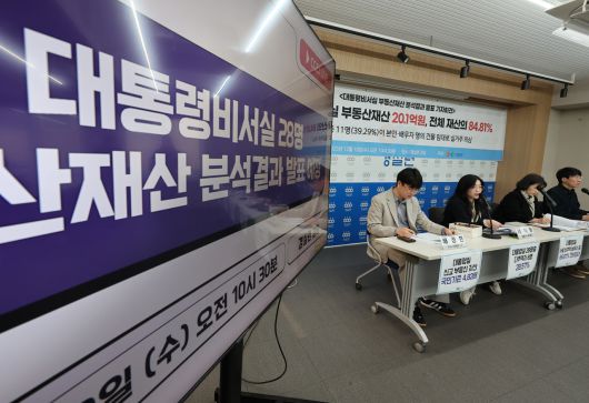 서휘원 경실련 정치입법팀장은 이날 “서울 평균 집값이 12억4000만원인데, 대통령실 평균 부동산 재산이 20억원을 넘는다는 건 정책을 설계하는 사람들의 현실이 서민·청년과 지나치게 동떨어져 있다는 의미”라며 “국민에게는 대출 규제로 시장 진입을 막으면서 고위공직자들은 강남 다주택·임대로 자산을 불리는 구조가 반복되고 있다”고 비판했다.