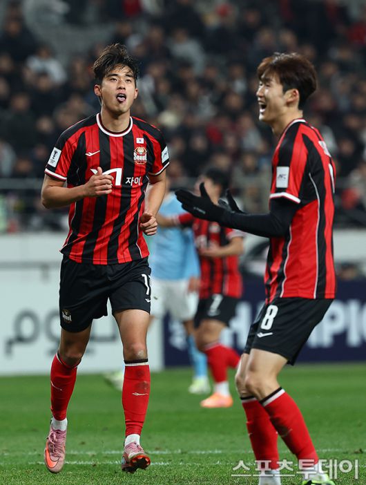 [스포츠투데이 팽현준 기자] 10일 서울월드컵경기장에서 열린 AFC 챔피언스리그 엘리트(ACLE)리그 스테이지 6차전 FC서울과 멜버른 시티의 경기, FC서울 천성훈이 골찬스를 놓치고 있다. 2025.12.10. [스포츠투데이 팽현준 기자 sports@stoo.com]