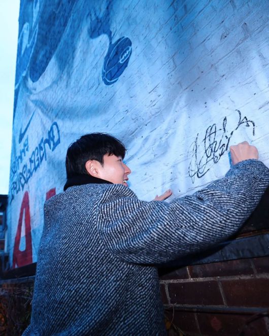 손흥민은 현장에서 직접 벽화에 사인을 남기고, 벽화와 같은 포즈를 취하며 감격스러운 표정을 감추지 못했다.