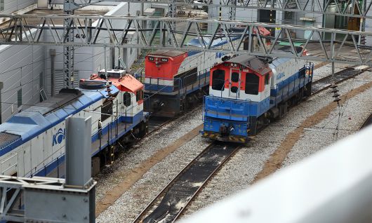 전국철도노동조합 총파업을 하루 앞둔 10일 서울 한 코레일차량사업소에 기관차가 정차해 있다. 뉴시스 |