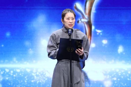 10일 열린 대한민국 콘텐츠대상 시상식에서 매기 강 감독이 옥관문화훈장을 받고 소감을 말하고 있다. /한국콘텐츠진흥원 |