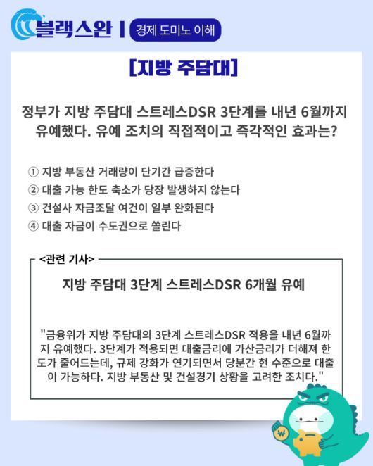 ▶ 기사 바로가기: 지방 주담대 3단계 스트레스DSR 6개월 유예