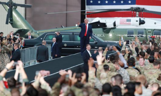 도널드 트럼프 미국 대통령이 지난 2019년 6월 방한 당시 주한미군 오산공군기지에서 장병들에게 인사하고 있다. (사진=연합뉴스) |