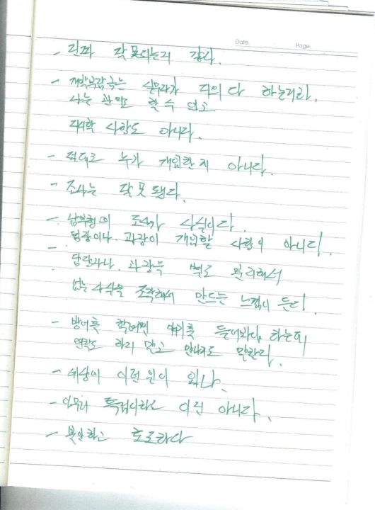 유서 말미에는 죽음을 암시하는 듯한 문장도 적혀 있었다. 그는 “내가 있는 게 너무 괴롭고 힘들다”며 “벗어날 수가 없는 거 같다”라고 했다. “선처해주시고 우리 한국이(대한민국) 발견해 주세요”라고도 적었다.