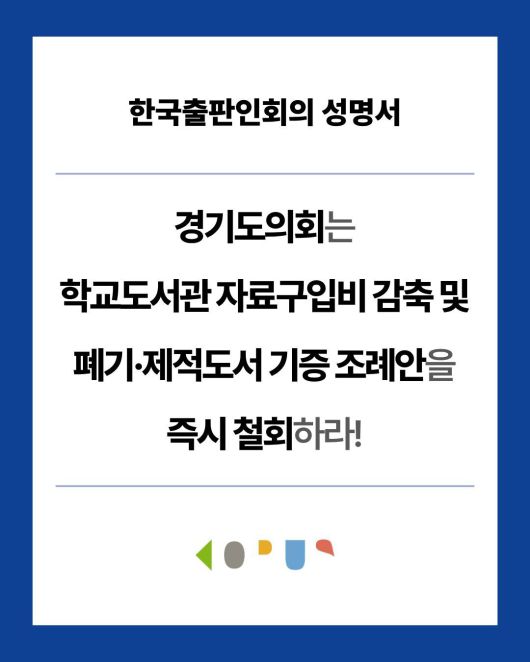 출판이회의는 성명에서 장서 품질·최신성 저하와 학생 '읽을 권리' 침해, 독서진흥정책 역행을 이유로 제시했다.