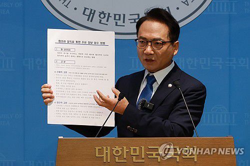 (서울=연합뉴스) 신현우 기자 = 더불어민주당 박선원 의원이 11일 국회 소통관에서 12·3 비상계엄과 관련해 고문·약물 사용 등을 검토한 문건을 공개하고 있다. 2025.12.11