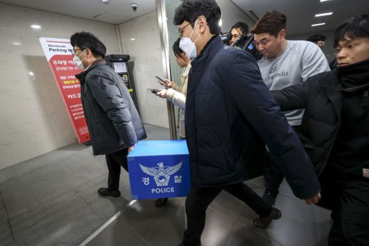 경찰이 대규모 개인정보 유출 사태를 빚은 쿠팡을 상대로 강제수사에 나선 9일 오후 서울 송파구 쿠팡 본사 사무실에서 압수수색을 마친 경찰들이 압수품을 옮기고 있다. 뉴스1 |