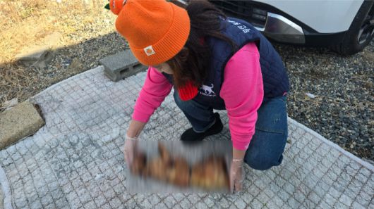제보를 받은 단체가 다음날 현장을 확인한 결과, 고양이 사체는 토막 나고 손질된 상태였으며 불에 타 털이 벗겨져 있었다.