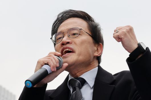 박주민 더불어민주당 의원이 11일 서울 종로구 광화문광장에서 서울시장 출마 선언을 하고 있다. 연합뉴스 |