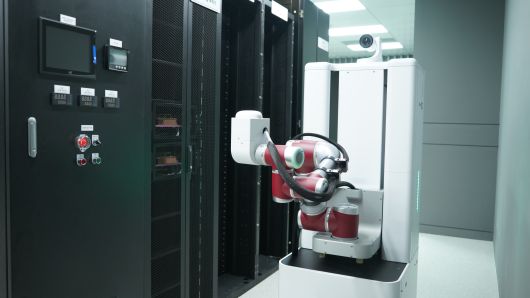 자율주행 로봇이 AI 이노베이션 센터 서버룸을 돌며 안전 점검을 하고 있다. /KT클라우드 |