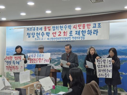 이들은 “창원시는 모든 현수막에 대해 교통안전·환경·혐오 여부를 심사하고 불법 현수막을 철저히 단속해야 한다”며 “국회는 사실상 무제한 허용되는 정당 현수막을 읍면동별 2장으로 제한하는 법 개정에 나서라”고 요구했다.