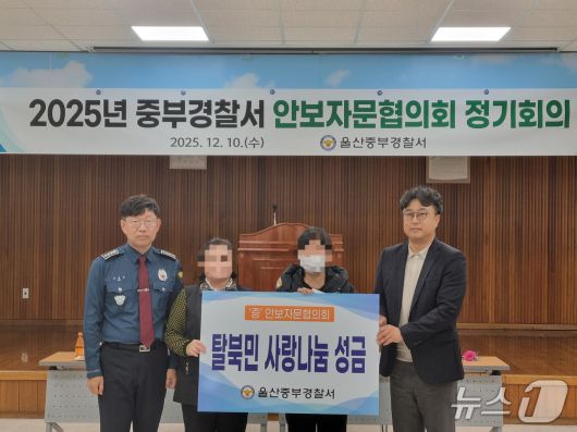 (울산=뉴스1) 박정현 기자 = 울산중부경찰서가 중부서 안보자문협의회와 함께 '탈북민 사랑 나눔 성금 전달식'을 진행했다고 11일 밝혔다.