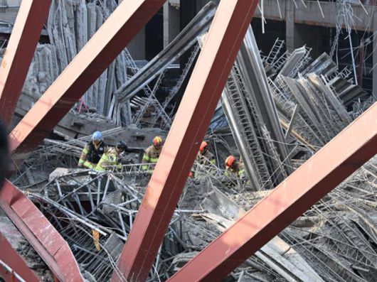사고는 공사 현장 레미콘 타설 작업 중 벌어진 것으로 조사됐다. 소방당국은 관할 소방서 인력 전원을 동원하는 대응 1단계를 발령하고 특수구조대 등을 동원해 구조 작업을 하고 있다.