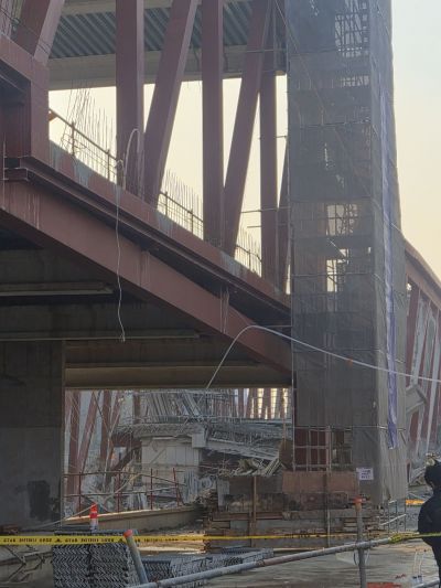 옛 상무소각장 부지에 조성 중인 광주대표도서관 공사 현장에서 철제 구조물이 붕괴하는 사고가 발생했다.