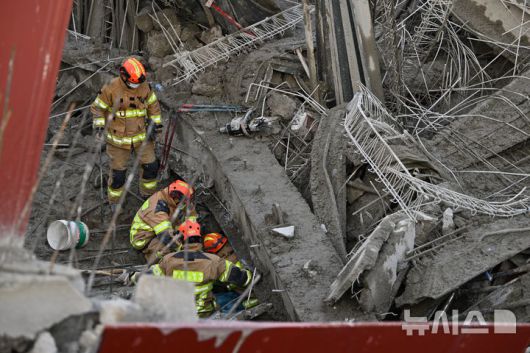 앞서 이날 오후 1시58분께 콘크리트 타설 작업 전후 현장 내 지상 2층 옥상부터 지하층까지 철제 구조물이 잇따라 무너지며 현장 작업 중이던 하청업체 소속 노동자 4명이 매몰됐다.