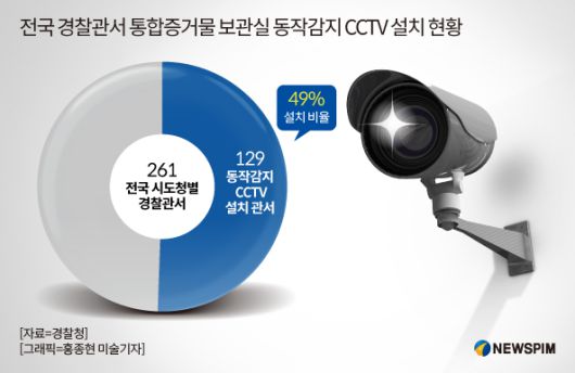 [서울=뉴스핌] 박우진 기자 = 경찰이 증거물 관리 논란이 불거지자 보안을 강화하기 위해 증거물 보관실에 도입하기로 한 '동작 감지 CCTV'가 전국 경찰관서 중 절반 이상 설치되지 않은 것으로 확인됐다.