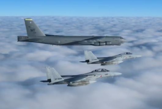 일본 항공자위대의 F-15 전투기와 미군의 B-52 전투기 /사진=일본 방위성 |