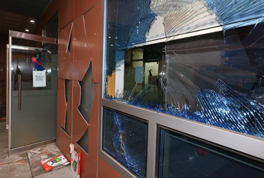 파손된 서부지방법원 외벽과 유리창.[뉴시스] |