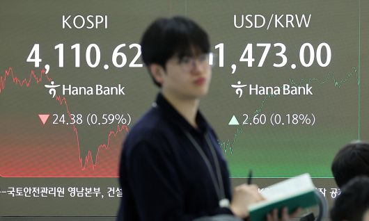 11일 서울 중구 하나은행 본점 딜링룸 전광판에 종가가 표시되고 있다. 뉴스1 |
