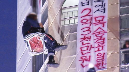 고공농성을 벌인 남성은 아파트 외벽 도색을 담당한 작업반장입니다.