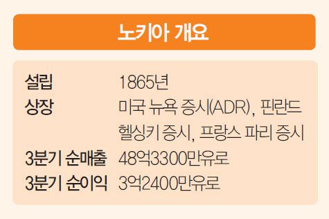 미국 뉴욕 증시에 주식예탁증서(ADR) 형태로 상장된 노키아는 최근 한 달간 36.2% 상승했다(10월 7일~11월 6일 기준). 10월 28일에는 7.77달러에 장을 마감하며 2015년 4월 이후 10년여 만에 최고치를 기록했다. 이후 주가가 6달러 안팎에서 횡보하지만 머지않아 다시 반등할 것이란 기대가 크다.
