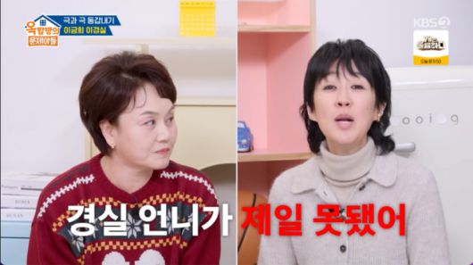 11일 오후 방송된 KBS2 예능 '옥탑방의 문제아들’(이하 '옥문아’)에서는 동갑내기 방송인 이금희와 이경실이 출연했다.
