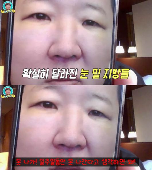이날 정형돈은 눈 밑 지방을 재배치하는 성형수술을 했다고 고백하며 이야기를 시작했다.