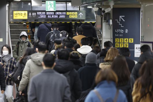 서울 지하철 1~8호선을 운영하는 서울교통공사 노사의 임금·단체협약(임단협) 협상이 극적 타결된 12일 오전 서울 지하철 5호선 광화문역에 도착한 시민들이 바쁘게 발걸음을 옮기고 있다. 뉴스1 |